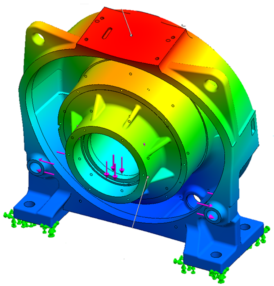 La alta seguridad y confiabilidad son los requisitos y atributos básicos de los ascensores, y las personas tienen requisitos aún más altos para la seguridad y confiabilidad de los ascensores del metro. Por lo tanto, llevamos a cabo un análisis detallado de la resistencia mecánica (Figura 7) y presentamos requisitos y mejoras especiales para la capacidad de carga mecánica y el rendimiento de frenado. En consecuencia, se han aumentado los factores de seguridad para soportar cargas de componentes mecánicos clave, como la base de la máquina, el cubo de la rueda, la polea de tracción y el eje.