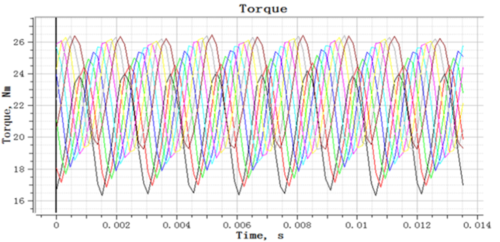 Para proporcionar una experiencia de conducción cómoda, el diseño de la máquina de tracción también presta especial atención a la supresión de armónicos, especialmente la supresión y reducción de armónicos de bajo orden (que tienen un gran impacto en la comodidad) y su amplitud de onda de fuerza (Figura 8), así como la reducción de la ondulación del par a baja velocidad (Figura 9) y el par dentado. Esto garantiza que el ascensor funcione sin problemas durante todo el proceso con poco ruido y poca vibración, lo que proporciona a los pasajeros una buena experiencia de conducción.