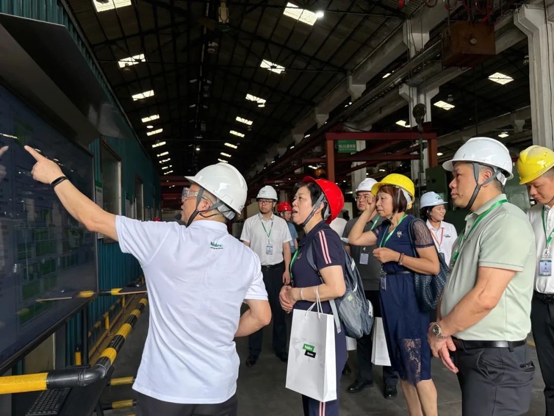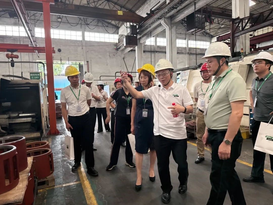 Después de una ronda de discusiones, el equipo de ascensor NIDEC llevó a los representantes invitados a formar grupos, se puso cascos de seguridad, pisó el pasaje azul y visitó el taller inteligente de fabricación de motores.