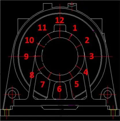 • a) Problema: La coaxialidad del orificio interior mecanizado fino del asiento del cojinete del conjunto de base de la máquina con doble soporte es inestable. Después del montaje, el descentramiento de la cámara de rodamientos de toda la base de la máquina excederá la tolerancia, lo que no cumple con los requisitos del dibujo.