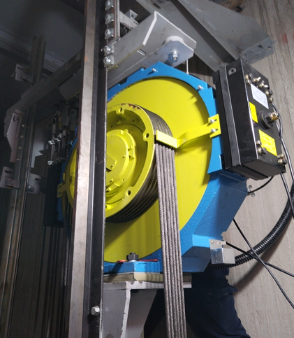 • Con una capacidad de carga máxima de hasta 5500 kg y una velocidad máxima del elevador de 3 m/s, diferentes esquemas de relación de tracción cubren requisitos de carga que van desde 2500 kg hasta 5500 kg.
