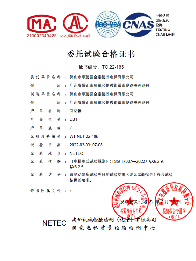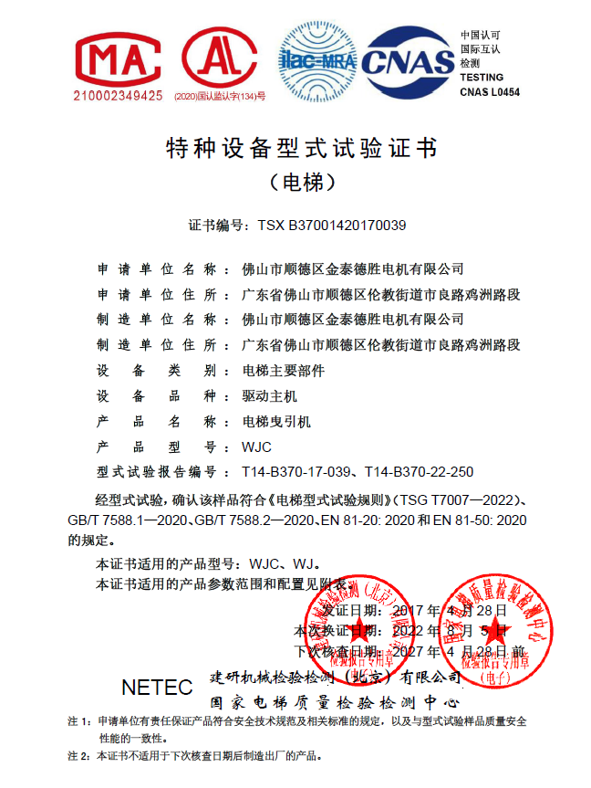 1. Certificación de prueba de tipo de equipo especial doméstico en China: incluida la prueba principal del tipo de motor, la protección de sobrevelocidad hacia arriba del automóvil y la certificación de dispositivos de protección de movimiento de movimiento de automóviles, que cubre la certificación de todas las series de nuestros motores principales. Al mismo tiempo, también puede proporcionar servicios de soporte de certificación rápida para clientes completos de ascensores.