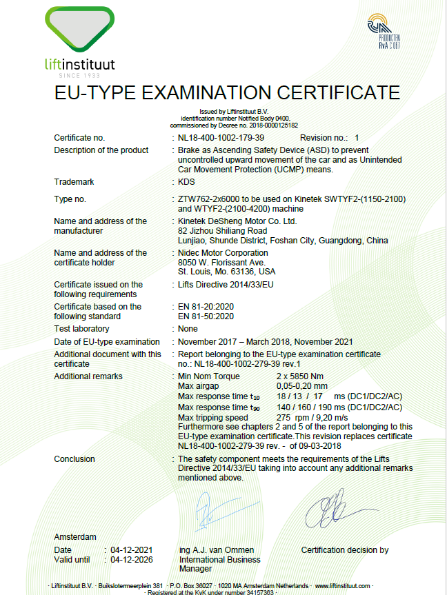 NIDEC Elevator Motors tiene una gama completa e integral de certificaciones de productos, incluidas las certificaciones de prueba de tipo de equipo especial nacional y las certificaciones de productos extranjeros correspondientes, que pueden satisfacer completamente las diferentes necesidades del mercado de los clientes.