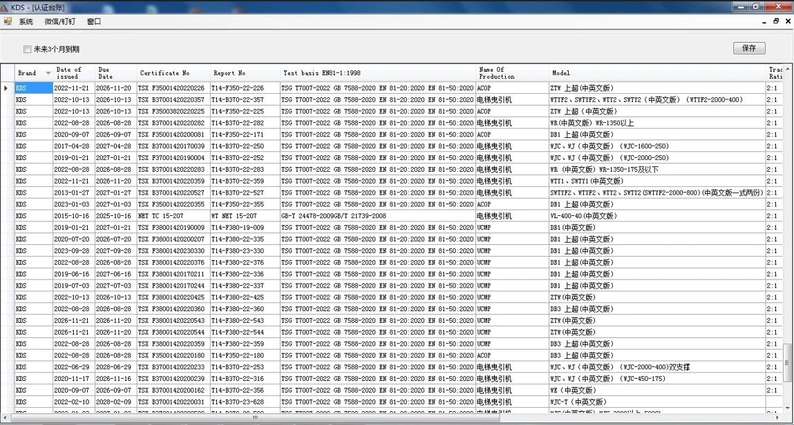Todos los certificados de certificación de productos de los motores de ascensores NIDEC se ingresan en el sistema de gestión de certificación de productos para la gestión unificada. El sistema de gestión de certificación lleva a cabo la gestión de procesos completos desde el registro de productos para la certificación inicial hasta la verificación y renovación de certificados durante su ciclo de vida, y monitorea simultáneamente el período de validez de cada certificado en tiempo real. Proporciona una advertencia temprana oportuna 4 meses antes del vencimiento de un certificado, lo que garantiza la validez continua de los certificados de certificación del producto.