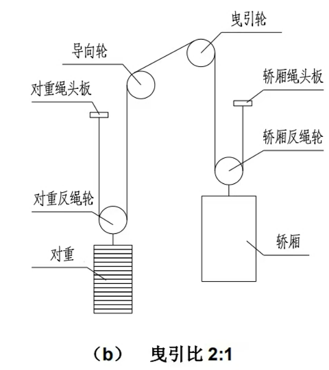 En algunos casos especiales, es necesario cambiar la relación de suspensión. Tomando el cambio de suspensión 1: 1 a la suspensión 2: 1 como ejemplo, deben considerarse los siguientes factores: